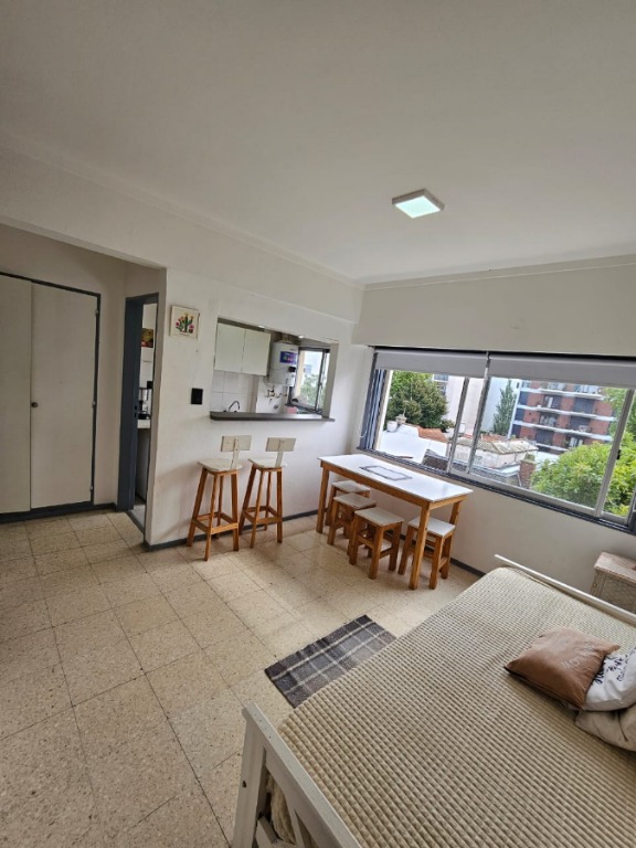 Dormitorio secundario a la calle, piso parquet plastificado, sommier 1 plz, placard y gran ventanal.
