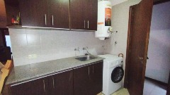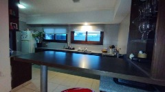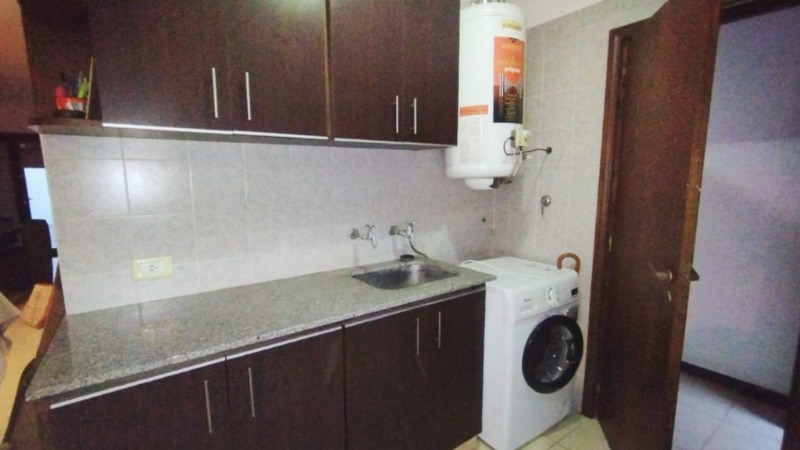 Cocina semi integrada con barra desayunadora y sector de lavadero.