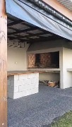 Parque trasero, solárium con deck de madera, quincho en concepto abierto con parrilla y estudio o escritorio cerrado.