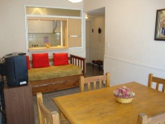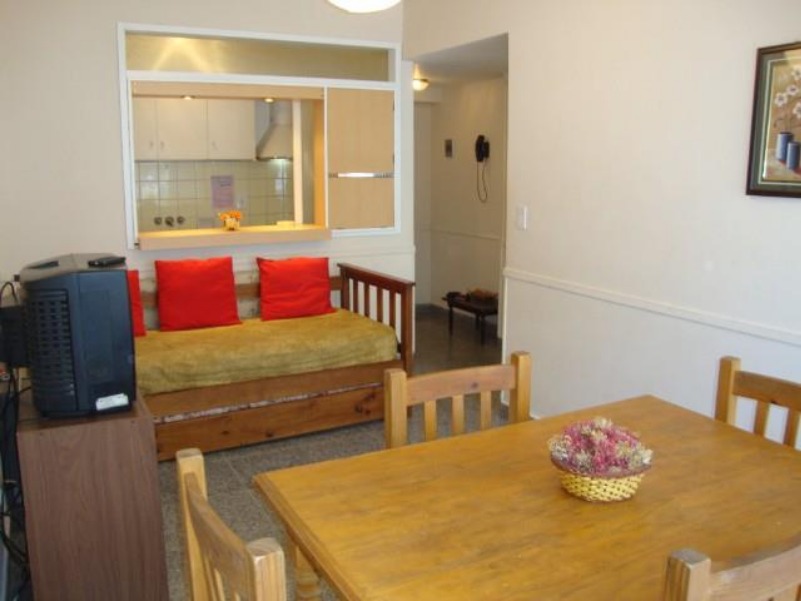 POSEE LIVING COMEDOR A LA CALLE CON BALCÓN CORRIDO, CAMA MARINERA, T.V CON DIRECTV PREPAGO. DORMITORIO CON CAMA DE 2 PLAZAS, A LA CALLE CON BALCÓN, VISTA LATERAL AL MAR, COCINA CON BARRA DESAYUNADORA YVAJILLA, HELADERA CON FREZZER Y MICROONDAS - BAÑO COMPLETO, BUEN EDIFICIO. AMOBLADO 2/4 PERSONAS